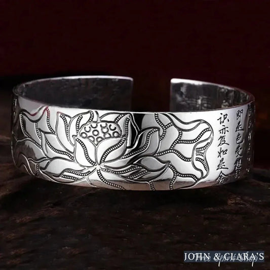 Buddhist Lotus & Heart Sutra Bangle Bracelet