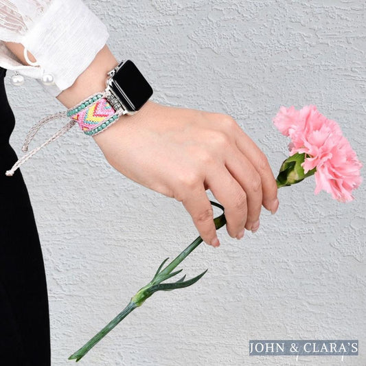 Candy Pink & Turquoise Braided Woven Nylon Adjustable Apple Watch Band