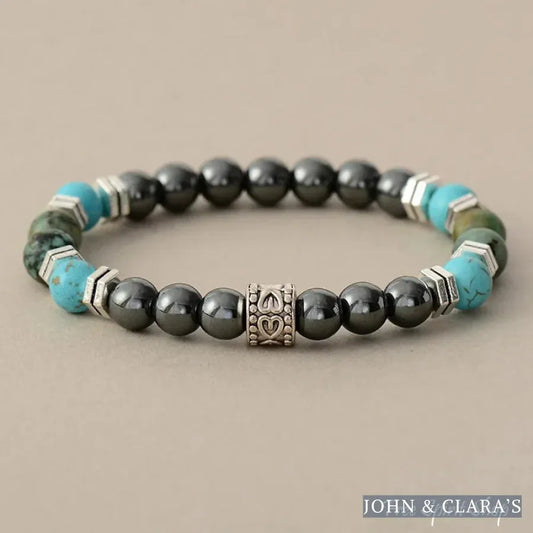 Natural Indian Onyx & Blue Apatite Bead Bracelet