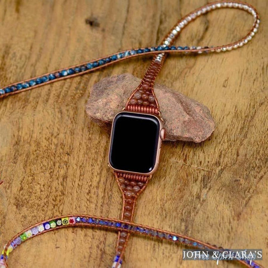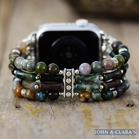 Natural Indian Agate Elastic Beaded Apple Watch Band