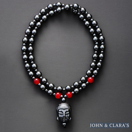 Natural Indian Agate Stone Buddha Mala Bead Bracelet