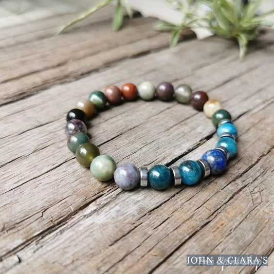 108 Natural Picasso Jasper & Blue Stone Mala Bead Bracelet