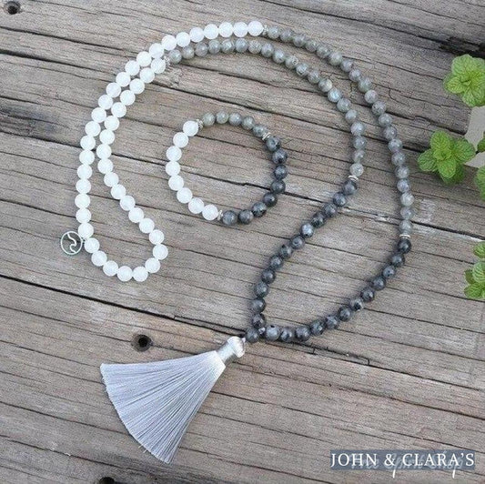 108 Natural Labradorite & White Stone Mala Bead Necklace / Bracelet