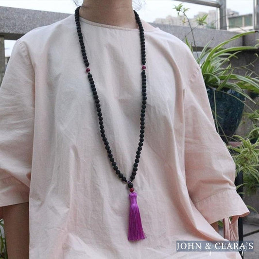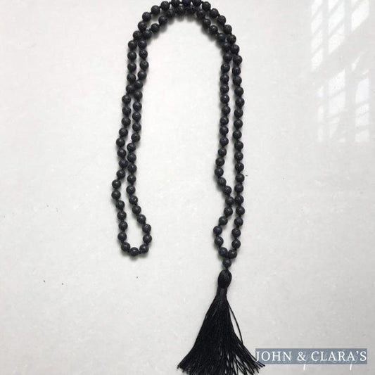 108 Natural Lava Stone Mala Prayer Beads With Tassel
