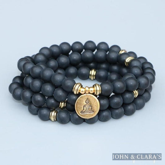 108 Natural Matte Black Onyx Mala Bead Bracelet
