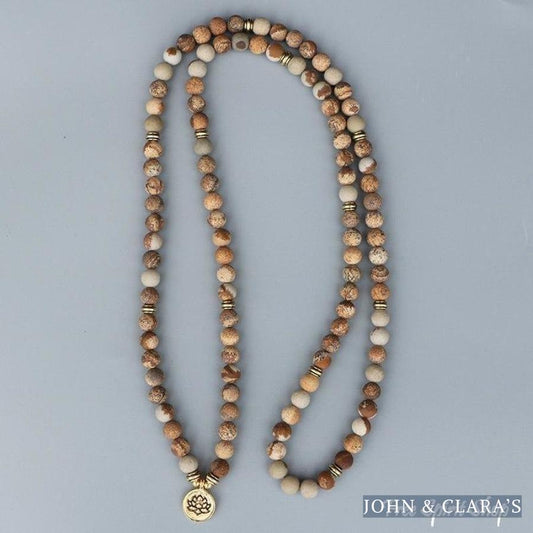 108 Natural Matte Picture Jasper Gemstone Mala Bead Bracelet