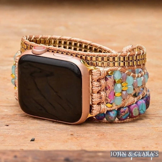 Purple Jasper & Aqua Blue Beaded Apple Watch Band