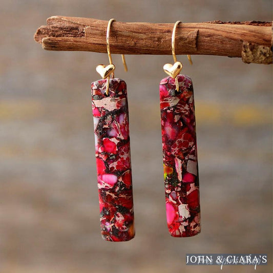 SAVE 80%Pink & Red Jasper Heart Earrings