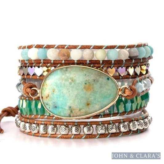 Handmade Natural Amazonite & Crystal Bead Wrap Bracelet