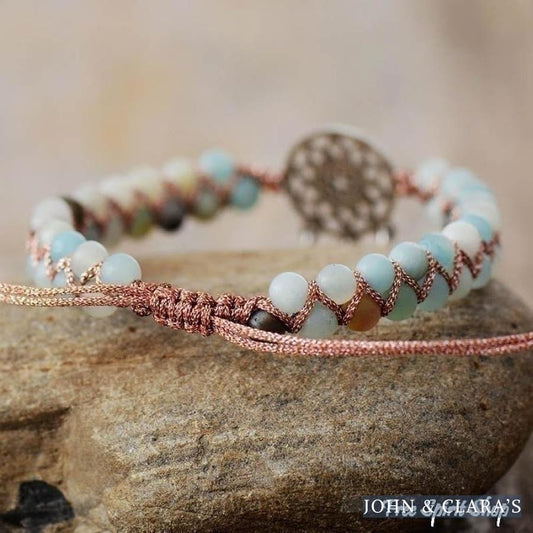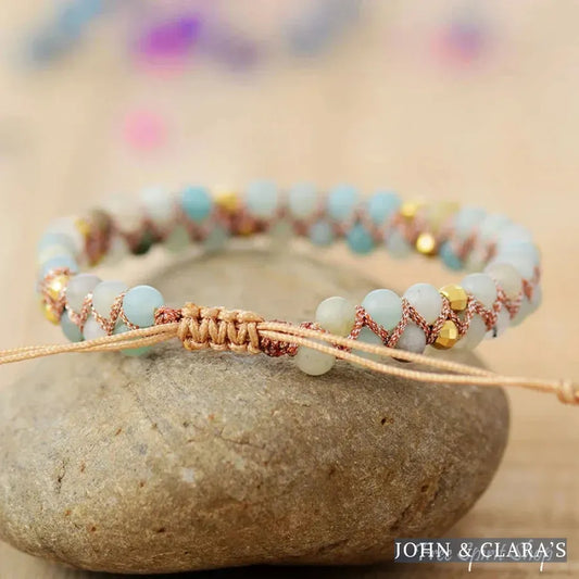 Natural Amazonite Adjustable Vegan Bead Bracelet