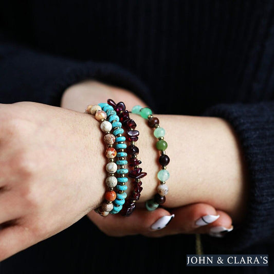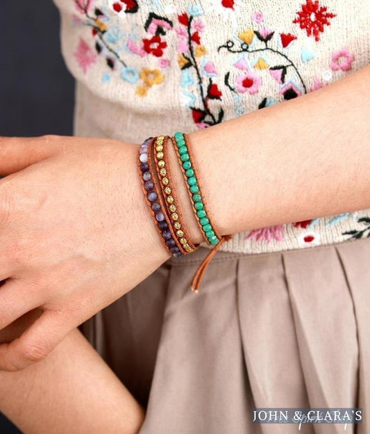 Turquoise Jasper Amethyst & Green Jade Multi-Row Bead Bracelet