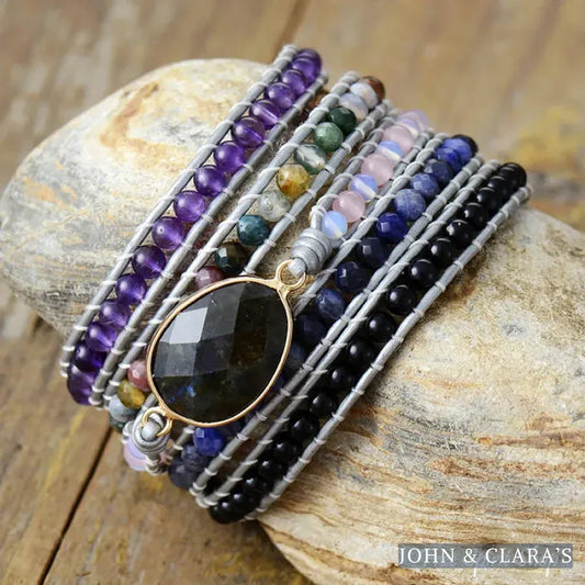 Natural Labradorite Sodalite Indian Agate Wrap Bracelet
