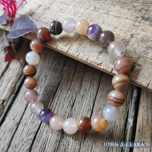 Natural Botswana Agate & Amethyst Bead Bracelet