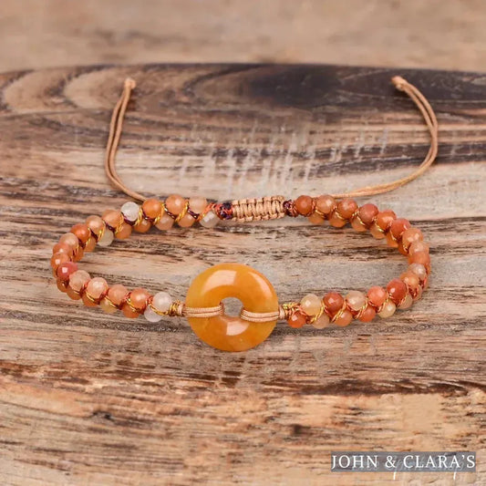 Orange Agate Circle Charm Adjustable Bracelet – Symbol of Creativity & Balance