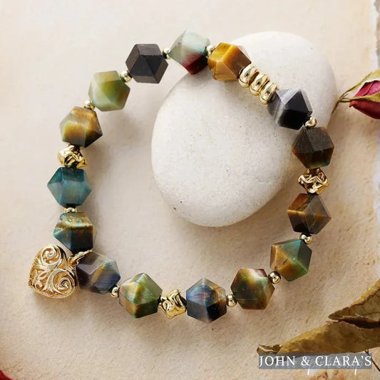 Tiger’s Eye Beaded Bracelet with Heart Charm