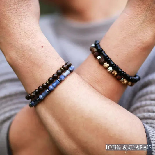 Natural Black Onyx & Picture Jasper Bracelet Set