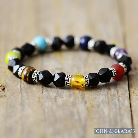 Natural Black Onyx & 7 Chakra Bead Bracelet