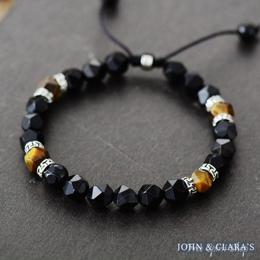 Natural Tiger Eye & Matte Black Onyx Faceted Bead Bracelet