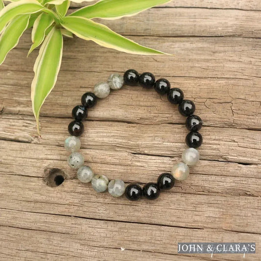 Natural Labradorite & Black Onyx Bead Bracelet