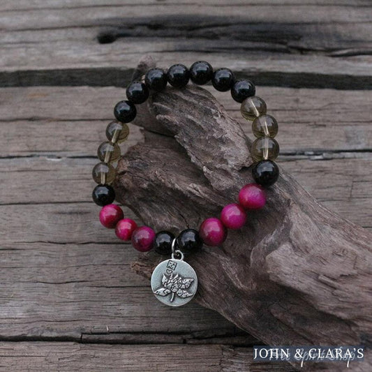 Natural Black Onyx Smokey Quartz & Rose Tiger Eye Bead Bracelet