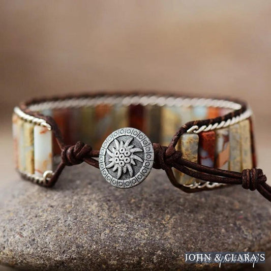 Handmade Natural Sunstone & Jasper Leather Wrap Bracelet