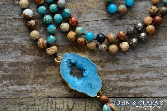 Handmade Natural Jasper & Pyrite Stone Druzy Necklace
