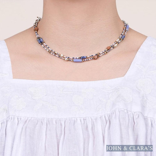 Natural Blue Sodalite Jasper & Pearl Beaded Choker Necklace