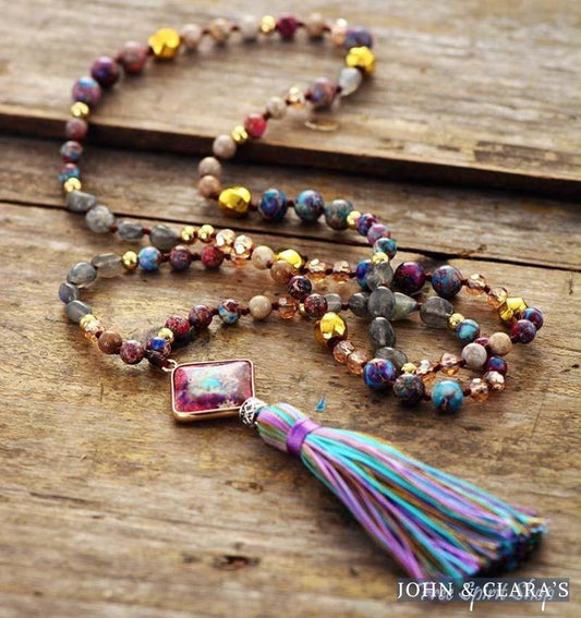 Natural 7 Chakra Balancing Beaded Tassel Necklace