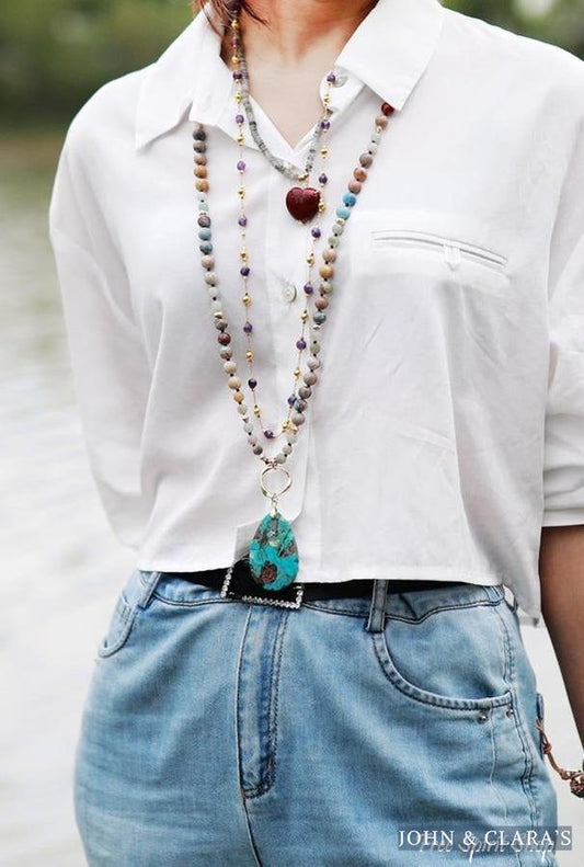 Natural Earth & Sea Mix Gemstone Mala Bead Necklace