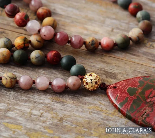 Natural Rhodonite and Jasper Gemstone Bead Necklace