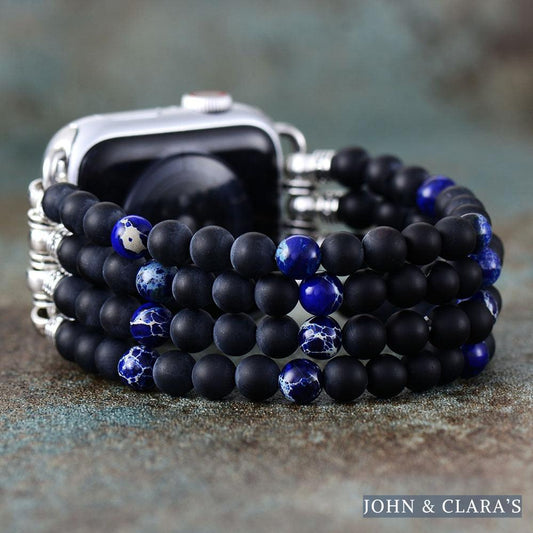 Black Onyx & Blue Jasper Beaded Stretchable Apple Watch Band
