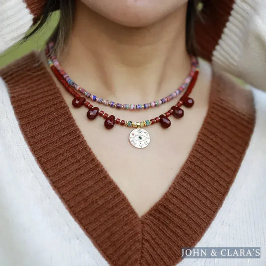 Natural Red Jasper & Egyptian Eye Charm Necklace