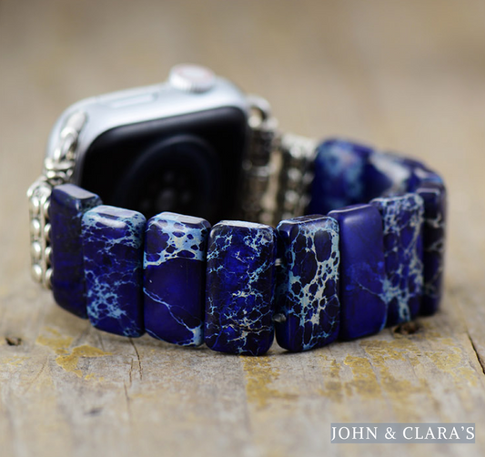 Handmade Dark Blue Jasper Elastic Apple Watch Band