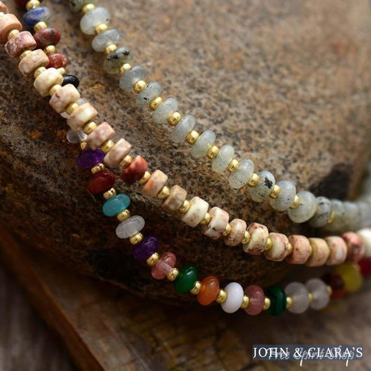 Natural Jasper & Labradorite Stone Bead Choker Necklace