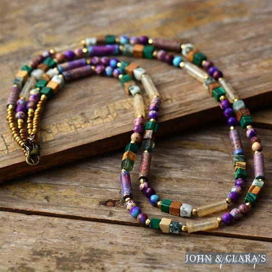Natural Purple Jasper & Mixed Gemstone Bead Choker Necklace