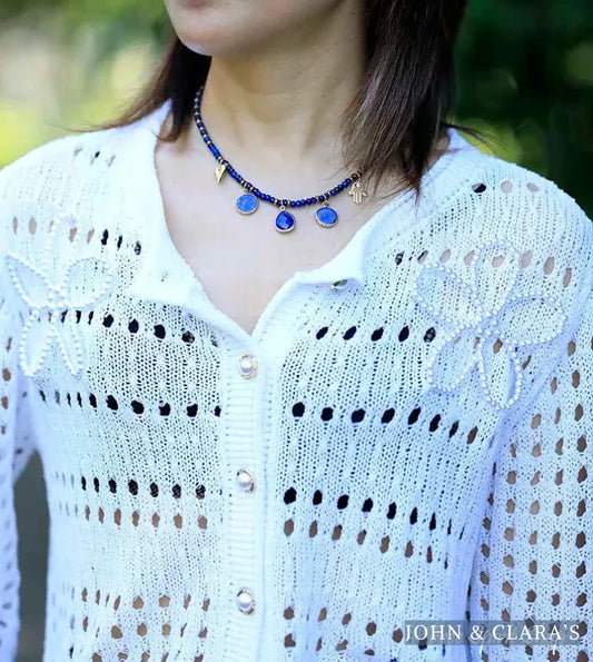 Handmade Blue Lapis Bead Choker Necklace