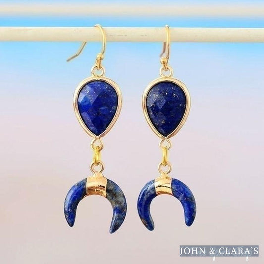Natural Lapis Lazuli Crescent Horn Earrings