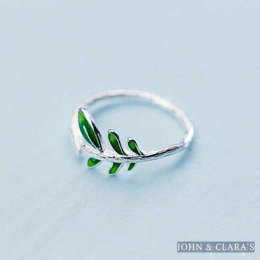 SAVE 80%Leaf & Blue Flower Ring