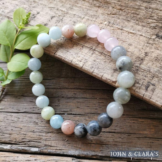 Natural Amazonite Labradorite & Rose Quartz Bead Bracelet