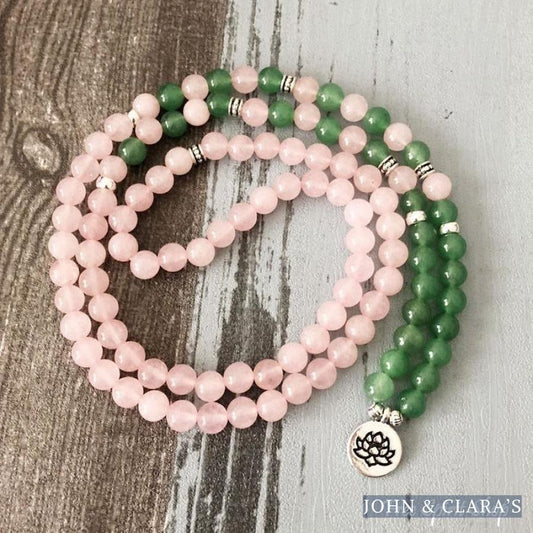 108 Natural Rose Quartz & Green Aventurine Mala Beads