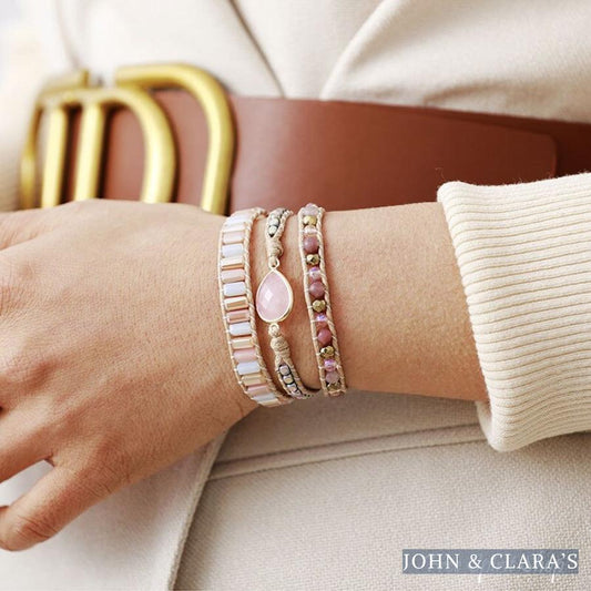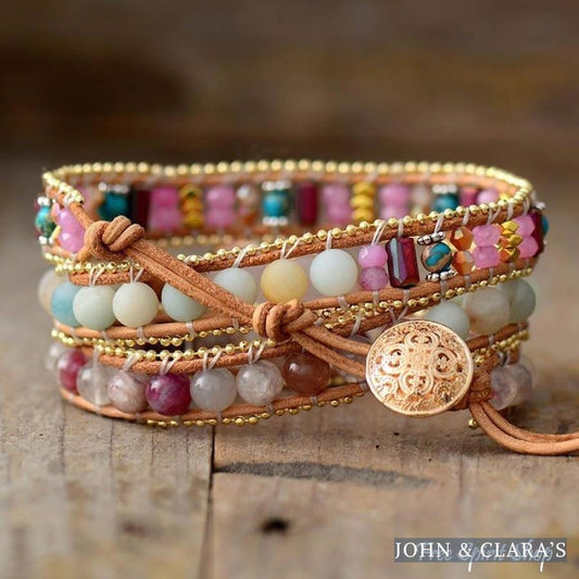 Natural Strawberry Quartz Jasper & Rose Quartz Wrap Bracelet