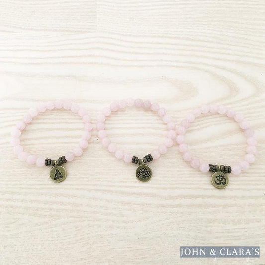 Natural Rose Quartz Stone Buddha Mala Bead Bracelet