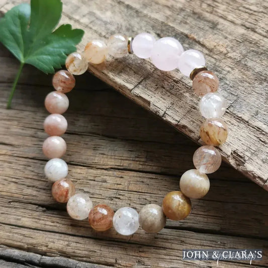 108 Natural Sunstone Rutilated Quartz & Rose Quartz Mala Bead Necklace / Bracelet