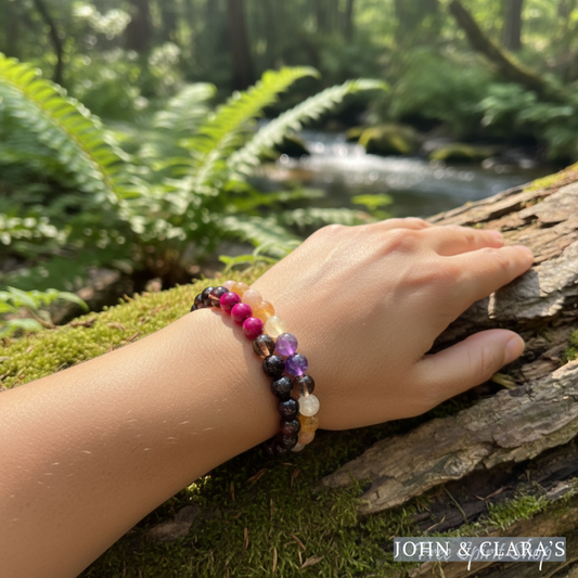 Natural Tiger eye, Garnet, Sunstone, Citrine & Amethyst Bead Bracelet