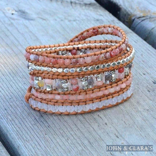 Natural Pink Aventurine & Sunstone Wrap Bracelet