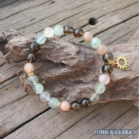 Natural Sunstone Fluorite & Smoky Quartz Bead Bracelet