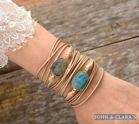 Handmade Natural Labradorite Agate & Jasper Wrap Bracelet