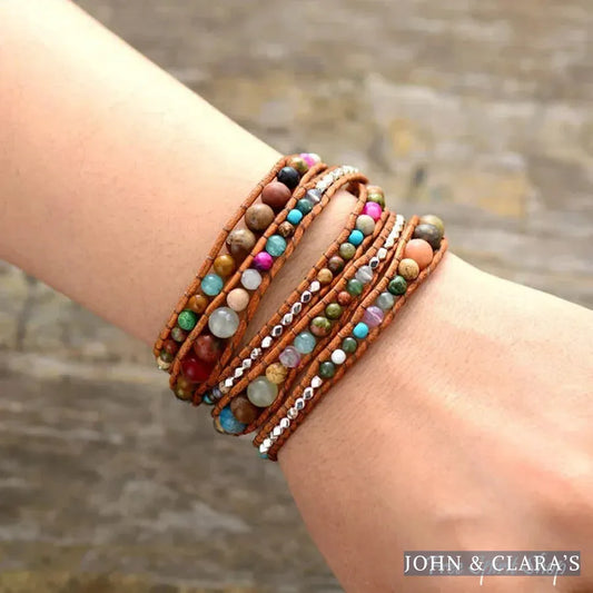 Handmade Natural Gemstone Mix Leather Wrap Bracelet