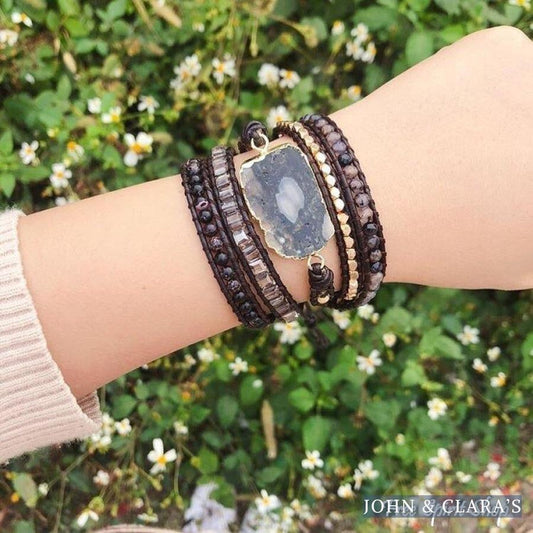 Handmade Dark Ocean Agate Gemstone Wrap Bracelet