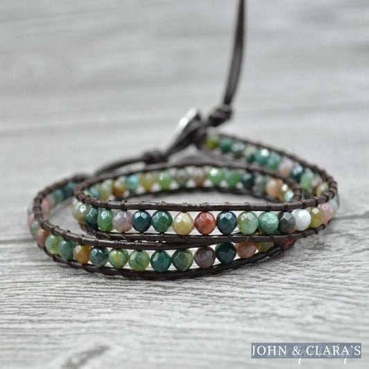Handmade Indian Agate Leather Wrap Bracelet